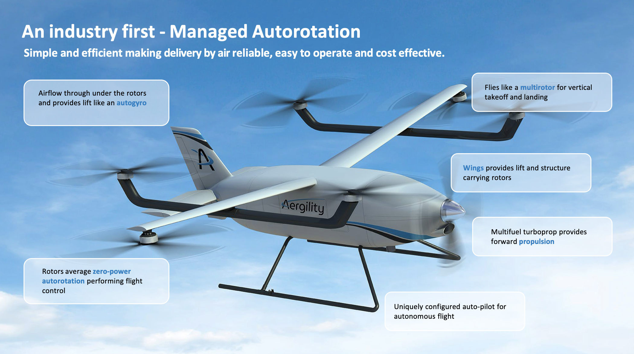 Managed Autorotation℗ – next generation of multifuel hybrid eVTOL cargo flight.